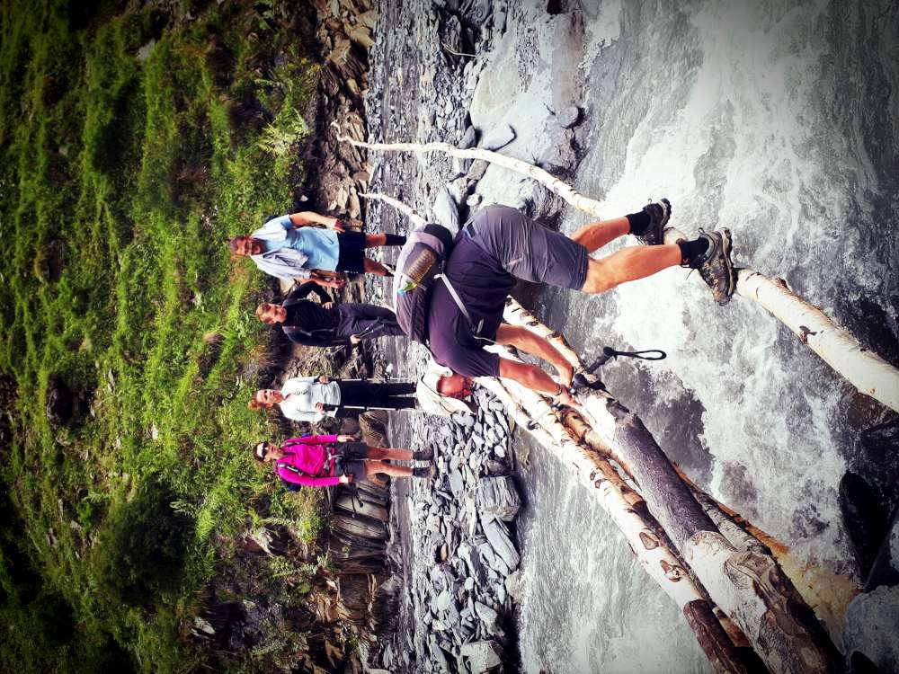 „Na dole”, po ostrym zejściu, czekała na nas rzeka i prowizoryczne mostki, przez które co rusz musieliśmy przechodzić.